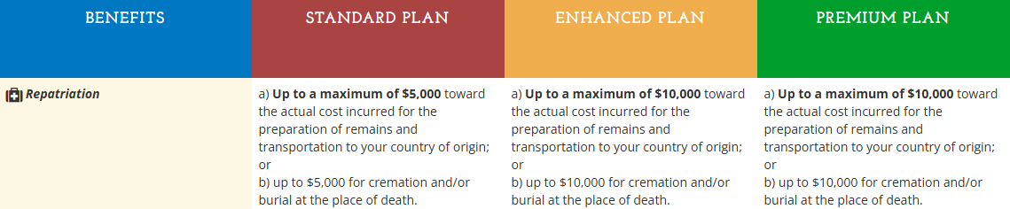 Repatriation services that can help cover the cost of returning your remains to your home country in the event of death.