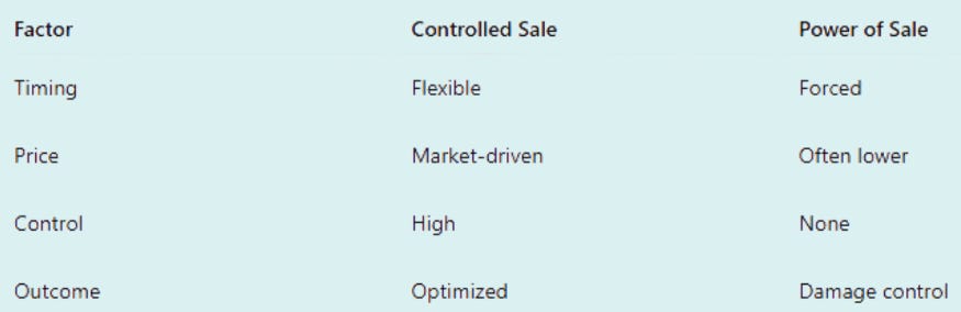 A controlled sale is far superior to a lender-driven sale.