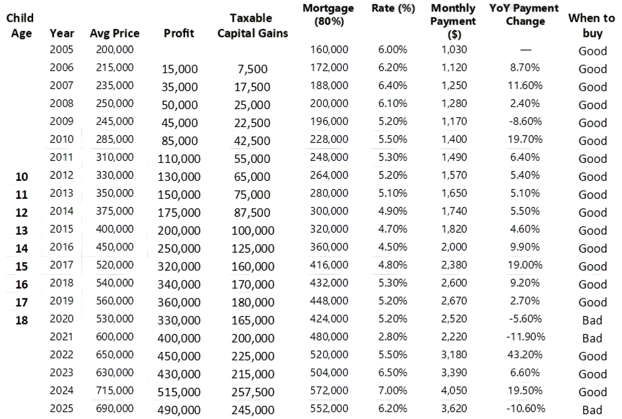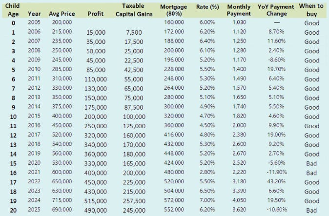 A family purchased a condo for $200,000 in 2005 when their child was born.