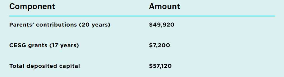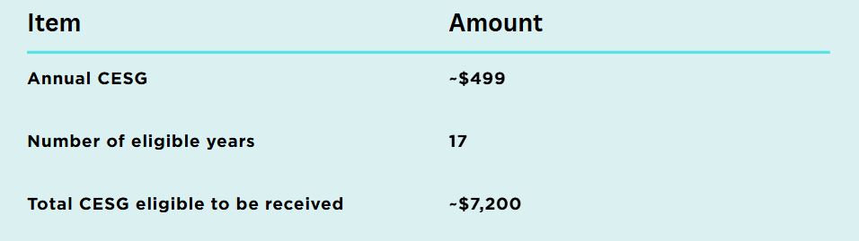 Annual CESG on $2,496 contribution ≈ $499