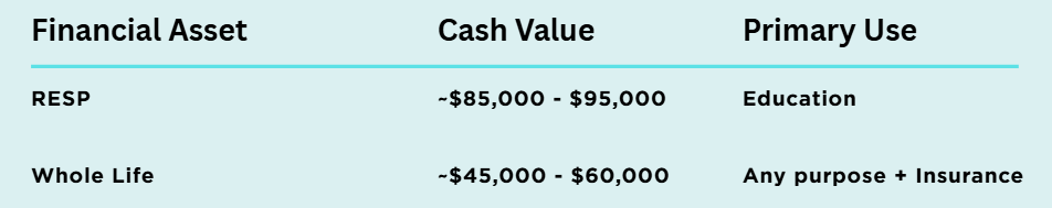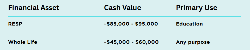 Unlike RESPs, which are designed strictly for education, cash values in whole life insurance can be accessed for any purpose.