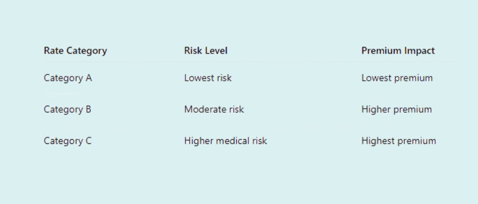 Once eligibility is confirmed, the insurer assigns a risk category that determines the premium.