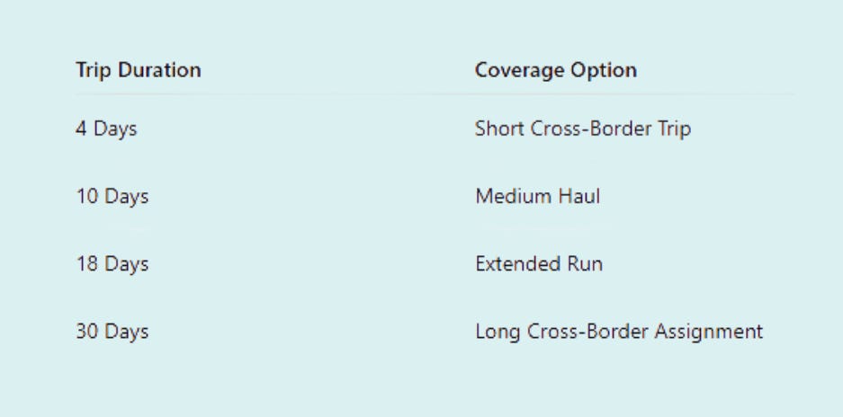 Together, these solutions create a financial safety net designed specifically for drivers who regularly travel across the Canada-U.S. border.