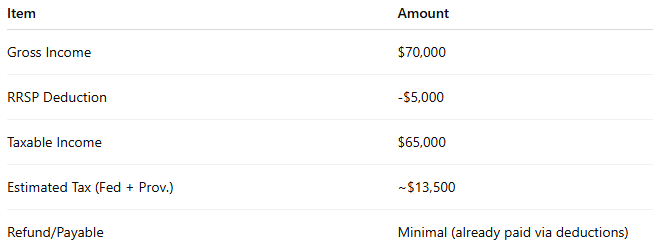 Deductions: Home office, internet, RRSP ($5,000)
